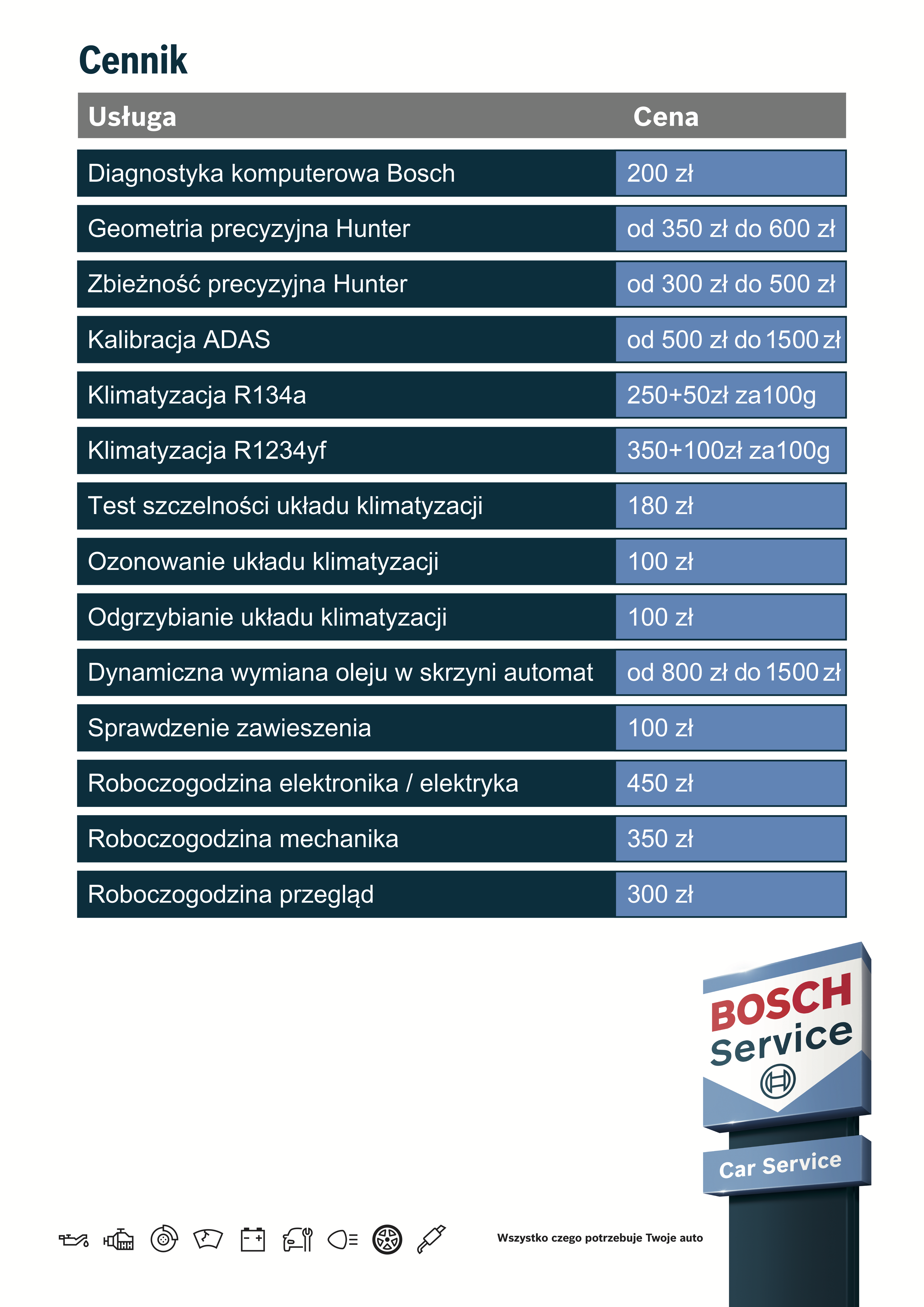 Przedstawiony poniżej cennik zawiera tylko część naszych usług. Więcej informacji o cenach udzieli Ci nasz doradca.